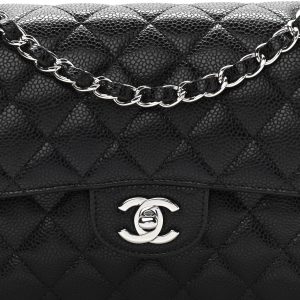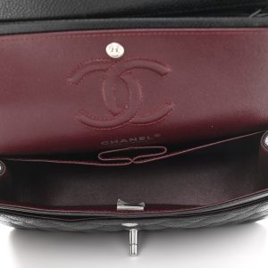 Black Quilted Caviar Small Double Flap Silver Hardware
