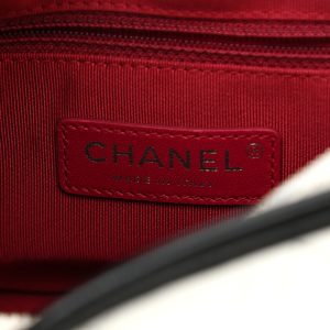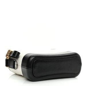 This is an authentic Luxury Aged Small Tote in Black and White. This chic shoulder bag is crafted of diamond aged leather in white with a sturdy black leather base. The bag features a black leather-threaded link shoulder strap in polished gold. silver. and aged ruthenium. The top zipper opens to a deep red fabric interior with pockets.