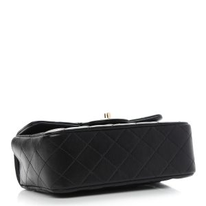 This is an authentic Luxury Mini Top Handle Flap in Black. This stunning small shoulder bag is finely crafted of diamond luxurious leather in black. The bag features a rolled leather top handle. a long aged link shoulder strap threaded with leather and a frontal flap with an aged Luxury turn lock. This opens to a leather interior with zipper and patch pockets.