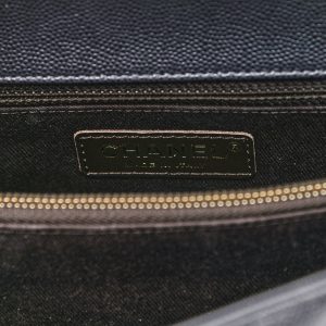 This is an authentic Small Handle Flap in Dark Grey. This chic tote is crafted of diamond-stitched grained leather in dark grey. The shoulder bag features a sturdy grey leather top handle. a link leather threaded shoulder strap with a shoulder pad. a rear patch pocket. and a turn-lock closure. The shoulder bag opens with a flap to a partitioned black fabric interior with a center zipper compartment. zipper and patch pockets.