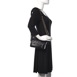 This is an authentic Aged Small Hobo in Black. This chic shoulder bag is crafted of diamond-stitched aged leather in black. It features a sturdy smooth black base. and thin gold-tone. silver-tone. and ruthenium link leather threaded shoulder straps with a shoulder pad. The top zipper features an aged zipper pull and opens to a red fabric interior with zipper and patch pockets.